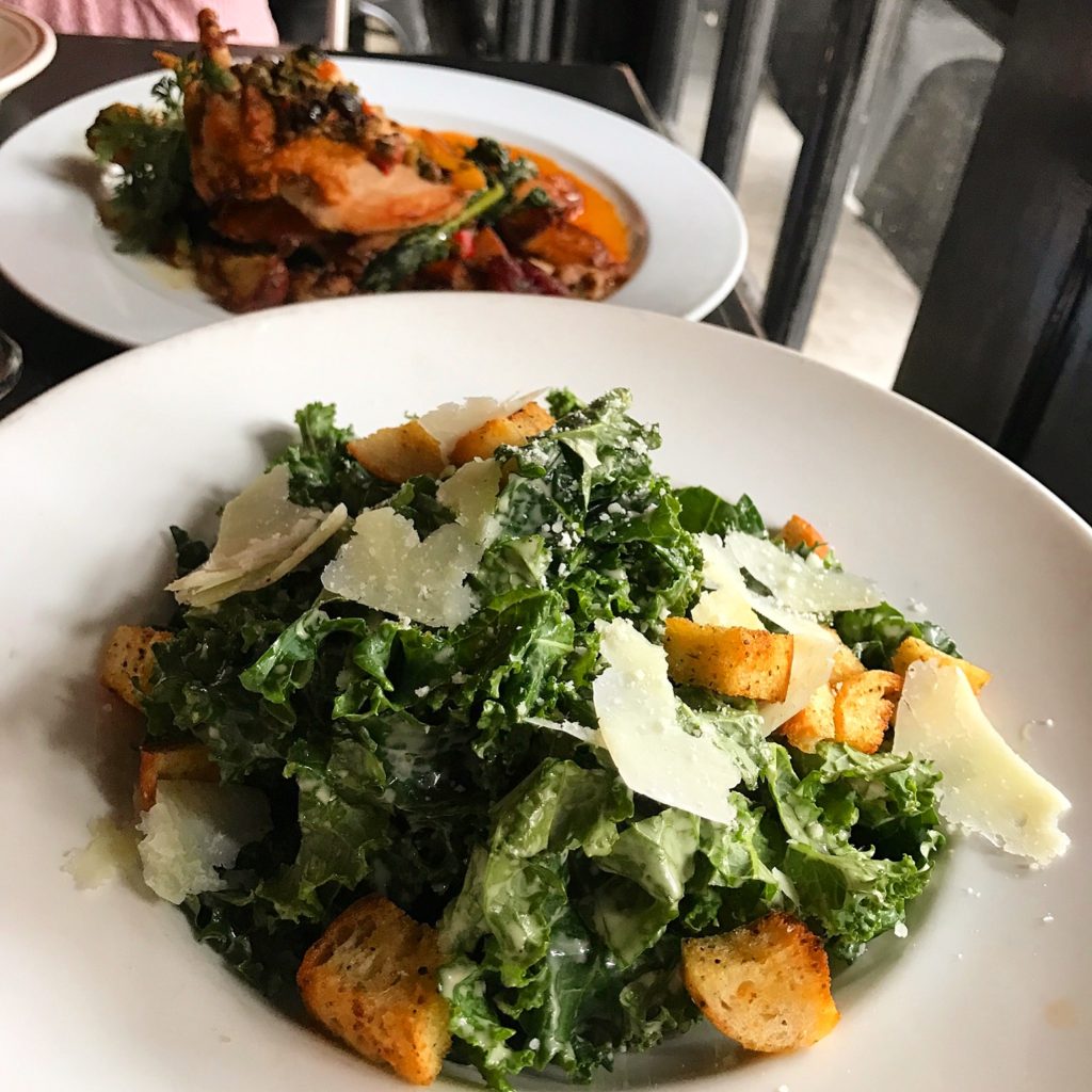 No good story ever started with “I ordered a salad,” but — you’ll be glad you did. The dinosaur kale salad, above, was delicious.