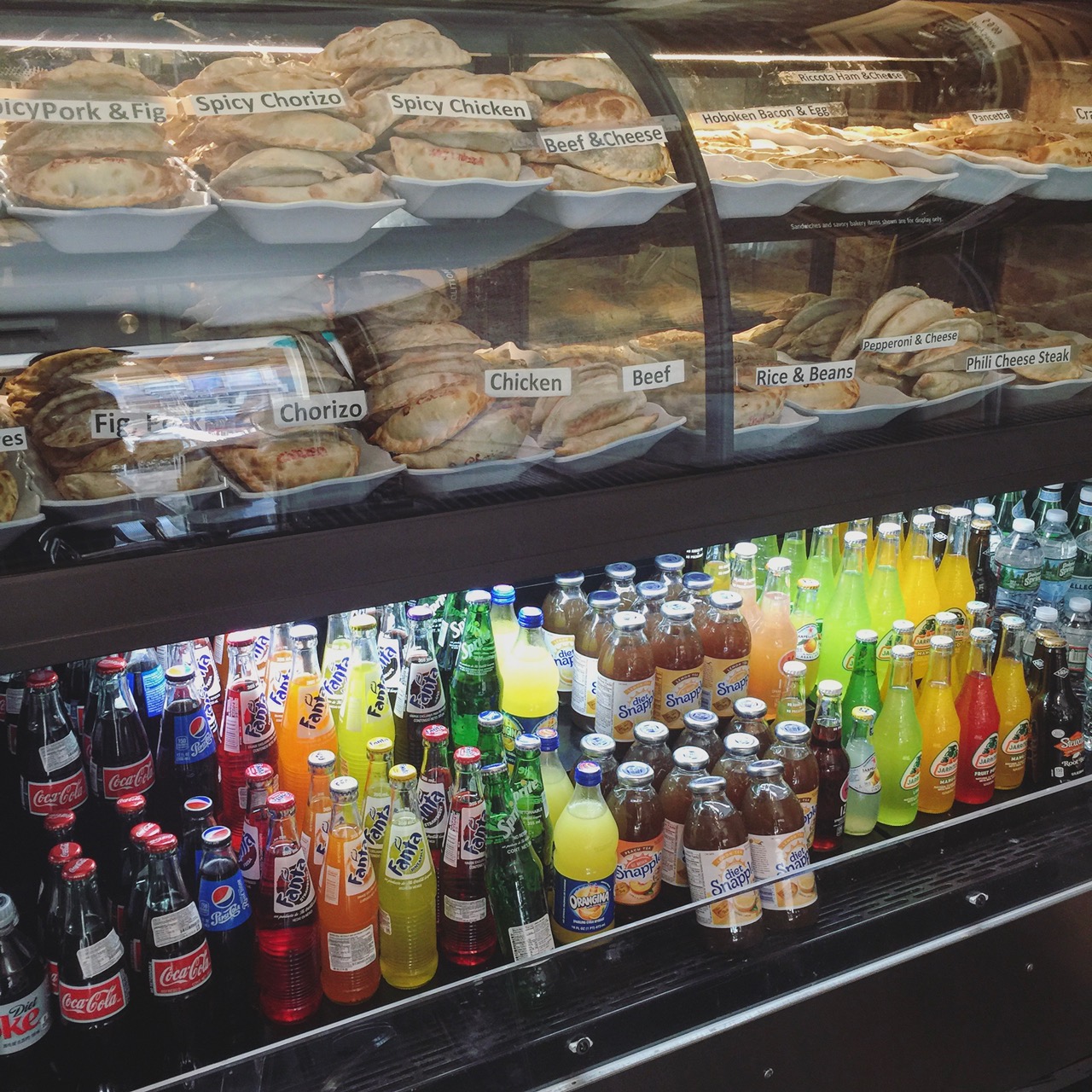 A few of the must-try items from the huge menu: spicy chicken, spinach, dulce de leche with bananas, pork and fig, really any meat or cheese or sweet craving can most likely be satisfied. The empanadas are pre-baked, and then upon ordering, they are toasted in an oven. YUM.