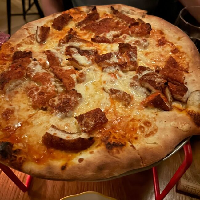 Panello’s mouthwatering wood fired pizza menu features classics like the margherita and marinara pies, plus more unique choices like truffle pizza and even a nutella pie for dessert. Go for a small or large depending on the size of your group, and do not forget the vino.