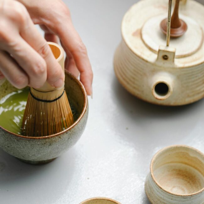 Matcha is a stone-ground powder made from green tea leaves that are grown in the shade. Matcha has been used for centuries in Japan in traditional tea ceremonies. The tradition of drinking matcha was built on four principles: harmony, respect, purity, and tranquility.